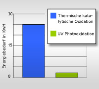 Die zu behandelnde Prozessluft durchströmt einen UV Reaktor mit speziellem Katalysatormaterial, in dem die unten aufgeführten Reaktionen ablaufen. Besonders leistungsfähig ist die Fotooxidation bei Desorptionsanalagen (Strippung) für die Grundwasserreinigung mit hohen Vinylchlorid- und Cis 1-2 Dichlorethen-Belastungen.